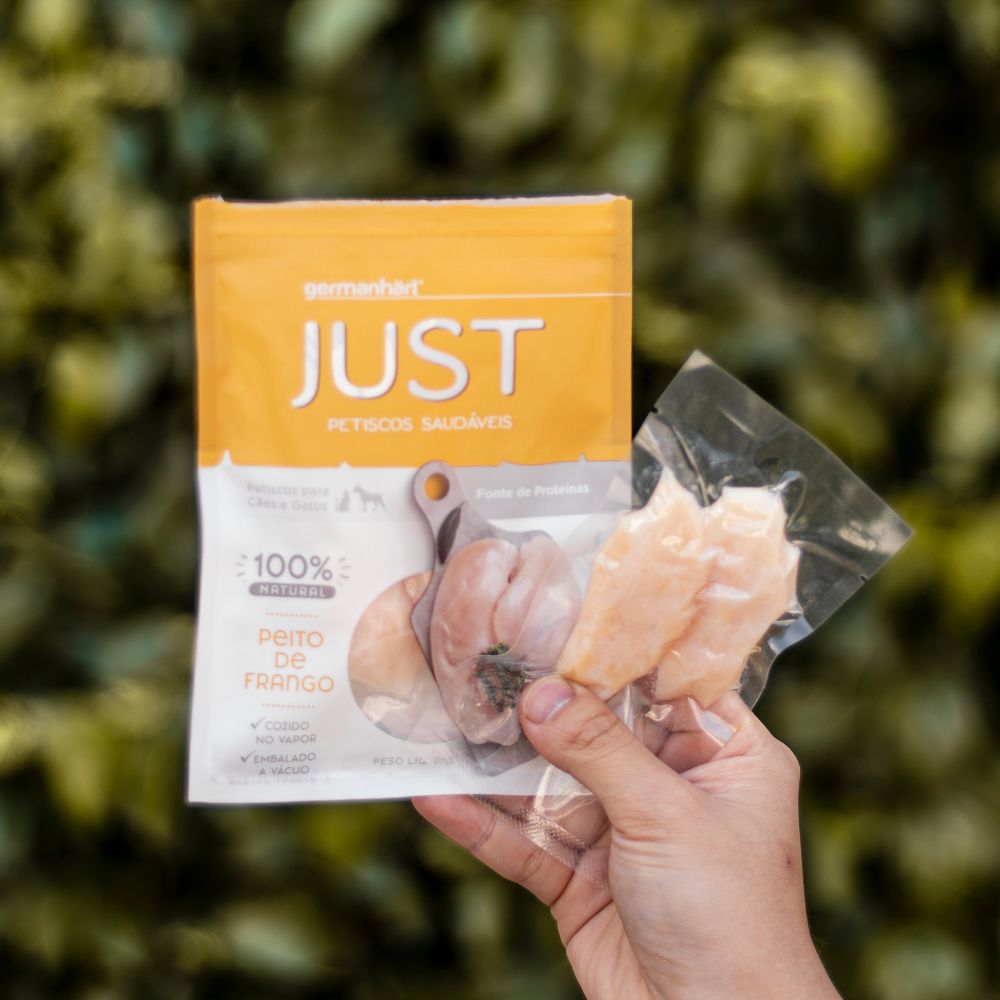 O Frango Cozido Just é um alimento 100% natural, preparado apenas com frango de alta qualidade e embalado a vácuo para garantir frescor, sabor e valor nutricional por muito mais tempo. Sem temperos, conservantes ou qualquer tipo de aditivo, ele oferece uma refeição saudável, pura e segura para cães e gatos.