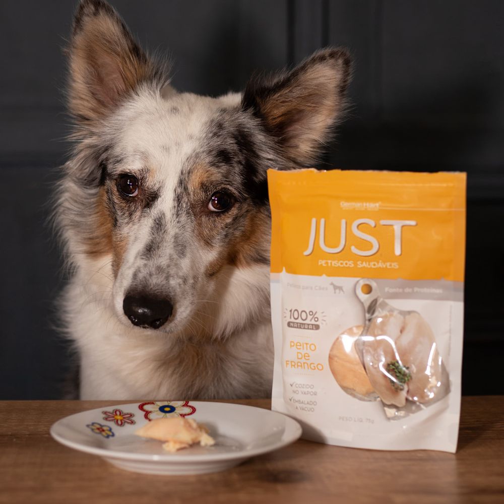 Pronto para servir, pode ser oferecido inteiro, cortado ou desfiado, permitindo ajustar o formato conforme a preferência do seu pet. É uma opção extremamente versátil: pode ser usado como refeição completa ou como complemento da ração, enriquecendo o prato com uma fonte de proteína magra e nutritiva. Livre de corantes, transgênicos, ácido cítrico e propilenoglicol, o Frango Cozido Just garante uma alimentação natural e equilibrada para pets de todas as idades.